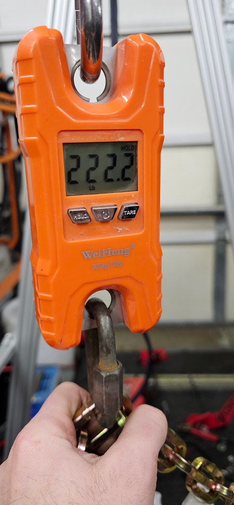 I was happy to see the motor, TorqueBox and cradle all weigh only 222.2lbs – – maybe that’s a lucky number now?