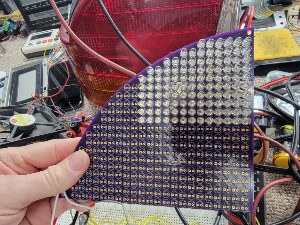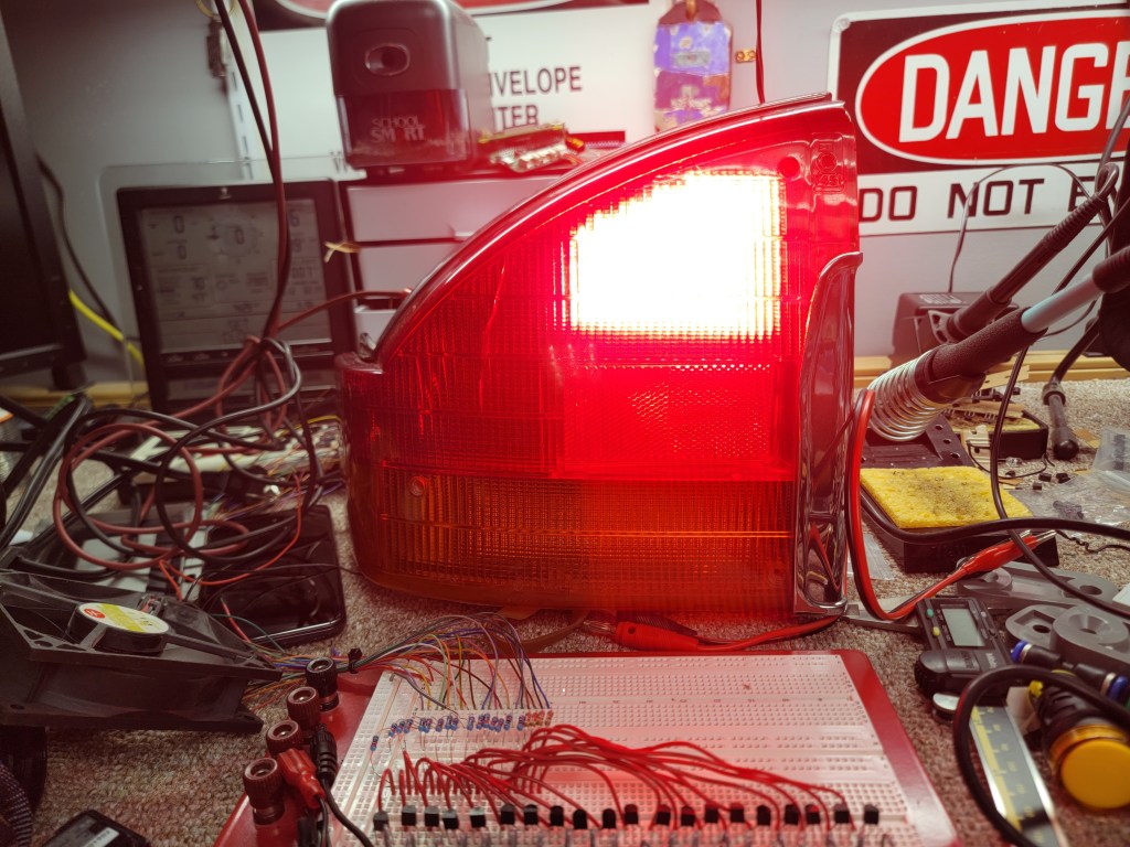 First, I have the left taillight complete! I finished the LEDs for the brake part and in total each light assembly will have 460 LEDs.