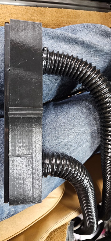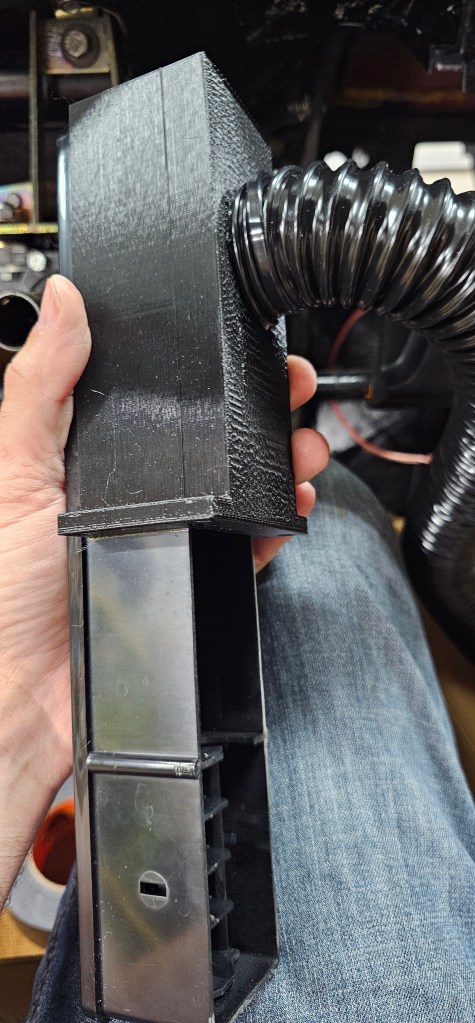 Because the HVAC is going to be all changed, I 3D printed some manifolds for all the vents to route to traditional tubing. This will eventually route under hood as that is where I am going to install the new HVAC box. A little unconventional, but space under the dash is at a premium and the setup I am looking to use will not fit.