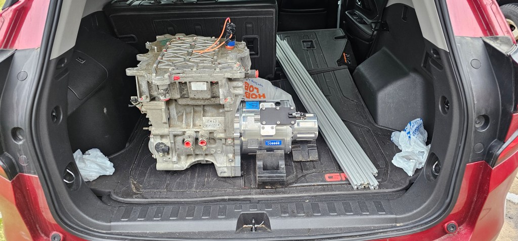 The motor is loaded up in the car and ready to take to my dad’s shop to make some mounts.