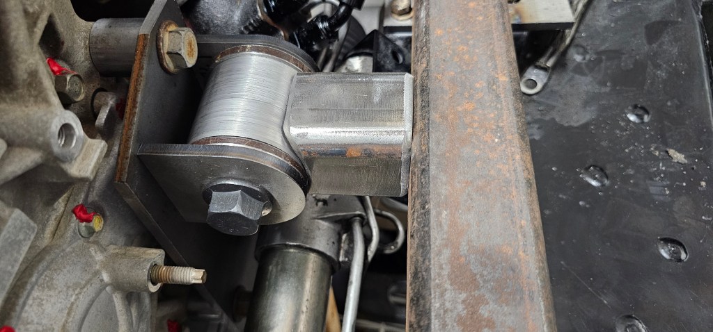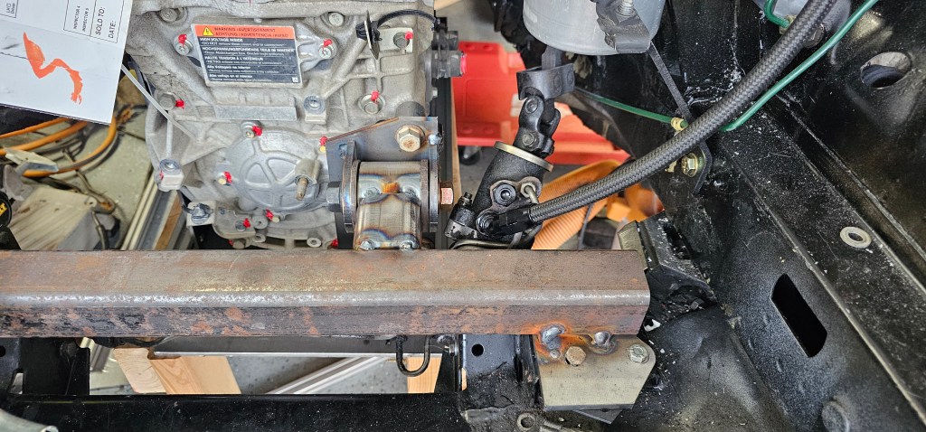 I have the start of the front motor mount underway, with some plates I had laser cut at SendCutSend along with a piece of 2″ square stock. I tack welded these and will pull it out of the car to do the final weld. I’m certainly not a welder, so this project will help me hone those skills.