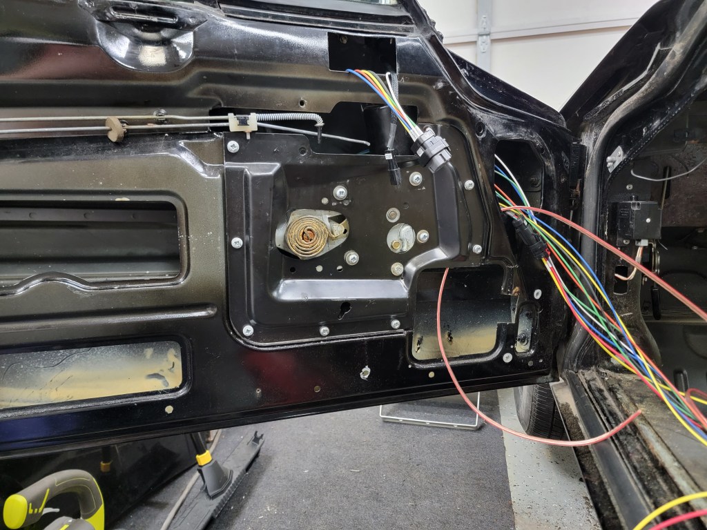 From here I started installing the other wiring harnesses in the door and passed the mass of cables through the gland at the door jamb.