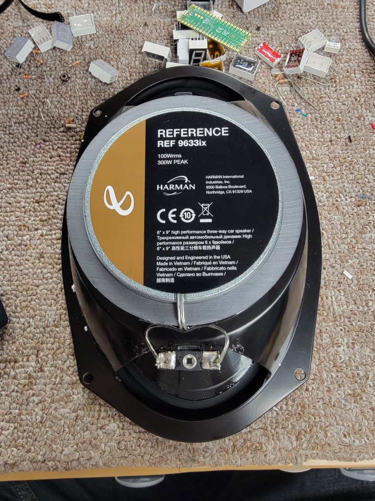 So today I continued on installing the 6×9 speaker in the driver’s door. 15 years+ ago when I was doing the whole gas tank thing, I had modified the driver door to accept a Kenwood 6×9 that was previously in my 88 Beretta GT, which was previously in my 86 Cavlier RS. However, like the rest of that project, I never finished it. So only the driver door was done. Then the whole mold issue came into play, so I decided to just trash those speakers and get something new.