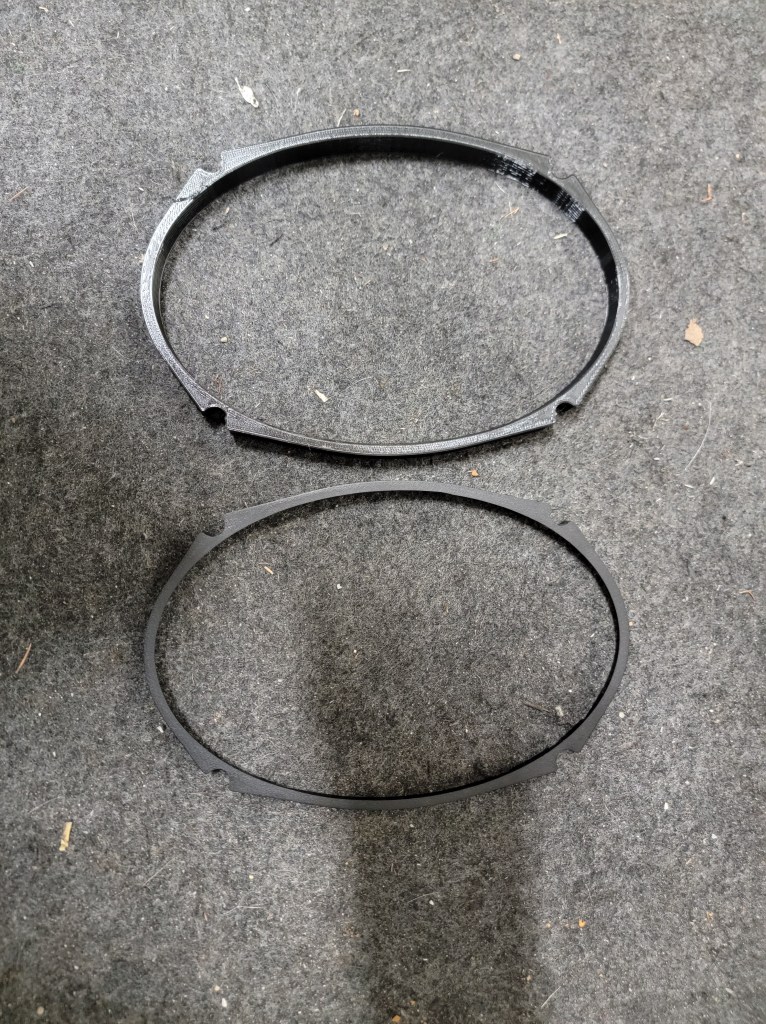 So in order to make them fit, I needed to use a spacer between the speaker and the door. The speaker kit came with spacers, but they were not thick enough. So, I scanned the original spacer, traced the outline in Illustrator and made a 3d replicate in Fusion 360 and we have this: