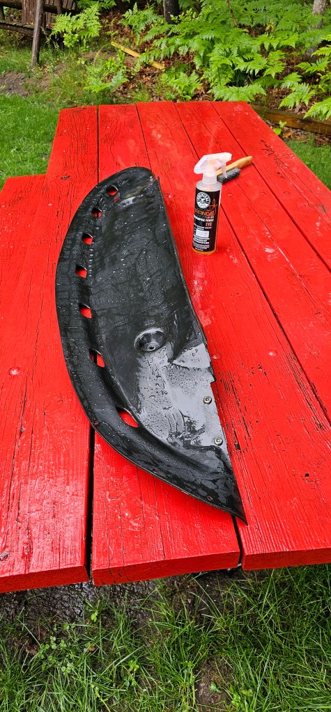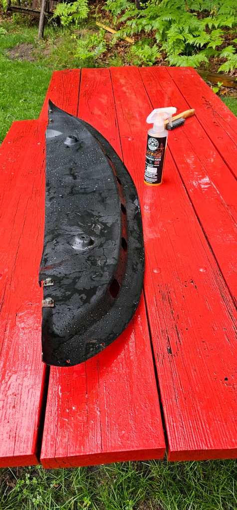 So off the bumper went and I power washed it inside and out and now it’s clean.