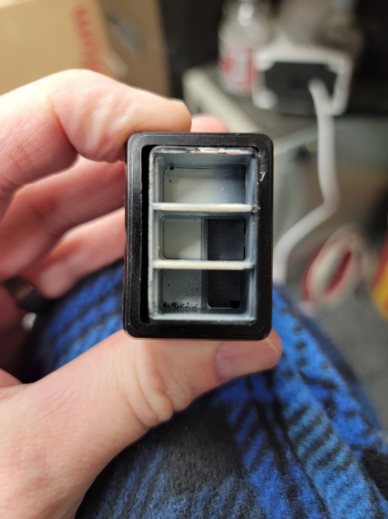 I started looking at these interior switches. The silkscreening is peeling and they are poorly backlit. I have a plan for replacing these with something a little more modern, but looks authenticish.
