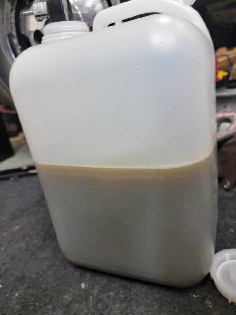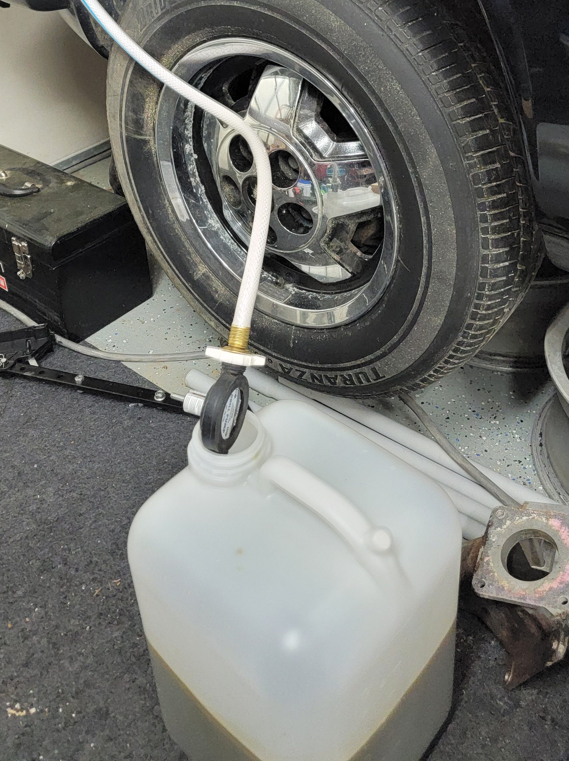 It’s time to pull coolant out of the car. I need to remove the heater core and I don’t have a good way to drain everything in the tight space I’m in. So, I decided to use an old garden hose and a small pump and suck all the coolant out of the engine. And it’s gross looking.